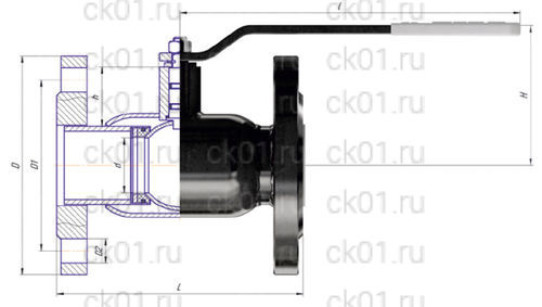 | DN | PN | d | D | D1 | D2 | n отв | h | H | I | L | Вес, кг |
